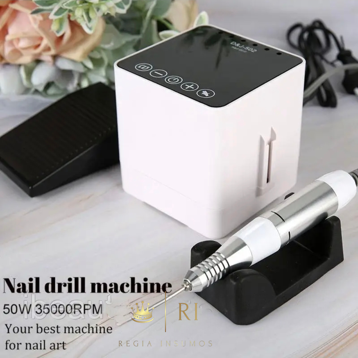 Torno Digital de cuerpo compacto de baja vibracion y bajo ruido. Con control de velocidad de 0 a 35.000RPM, 50W 50/60Hz -220V Cuenta con reversa, pedalera, kit de fresas para manicura rusa, soporte para lapicera y cable de alimentacion sus medidas de 9cm de diamentro x 9,5 cm lo vuelven de facil traslado
