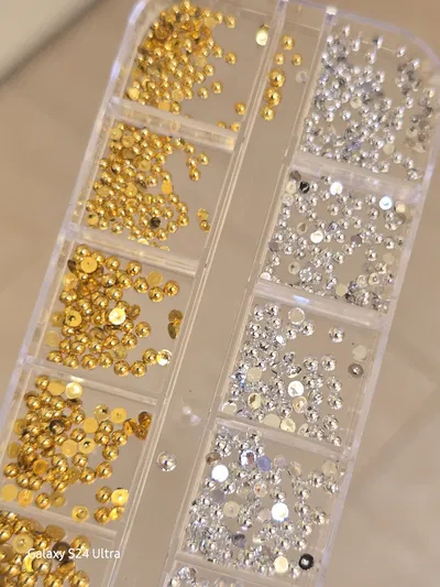 DECORACION media perla plata y oro caja