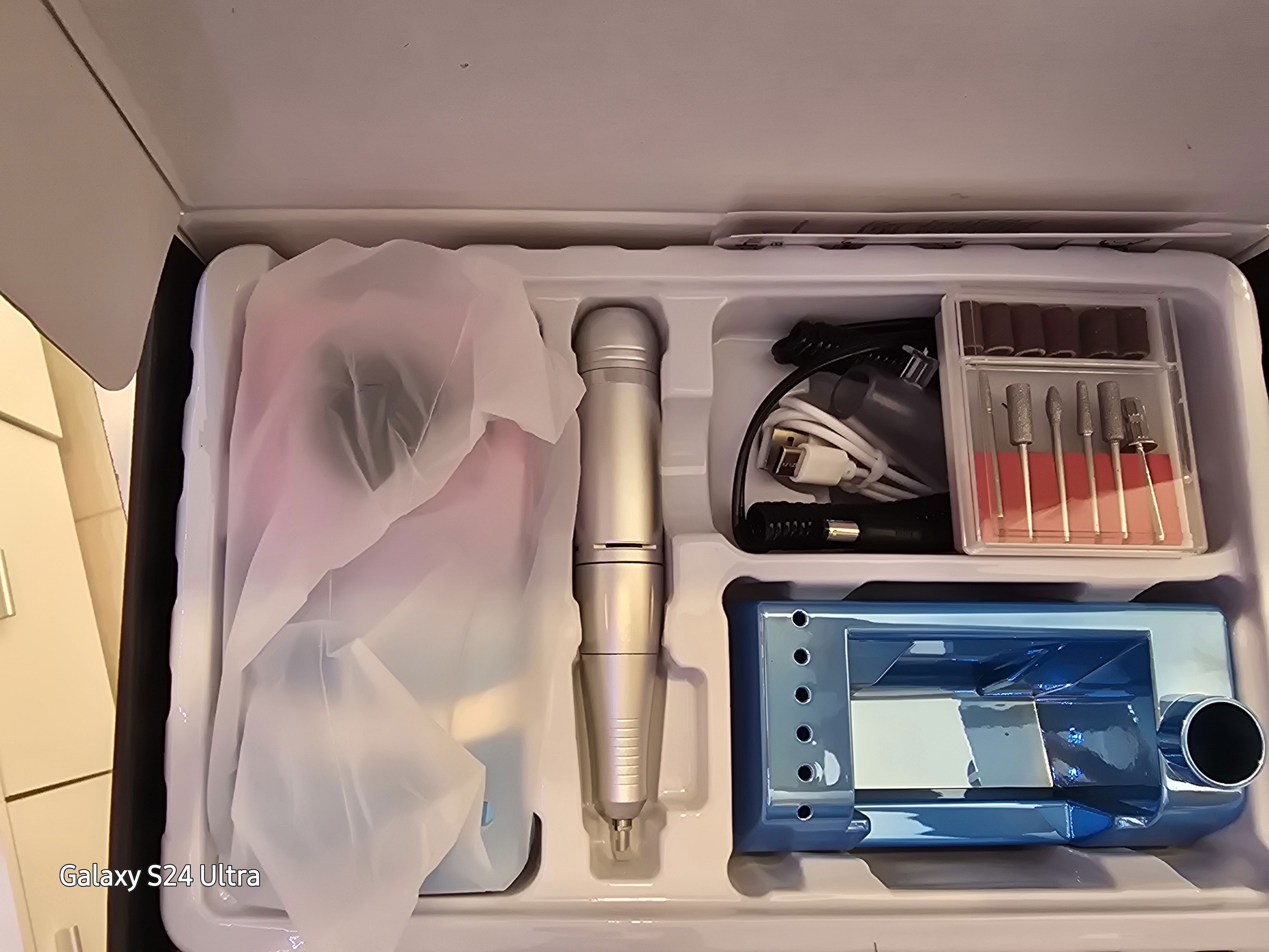 Incluye kit fresas , cable usb, conector de lápiz, y porta lápiz, botón de reversa.