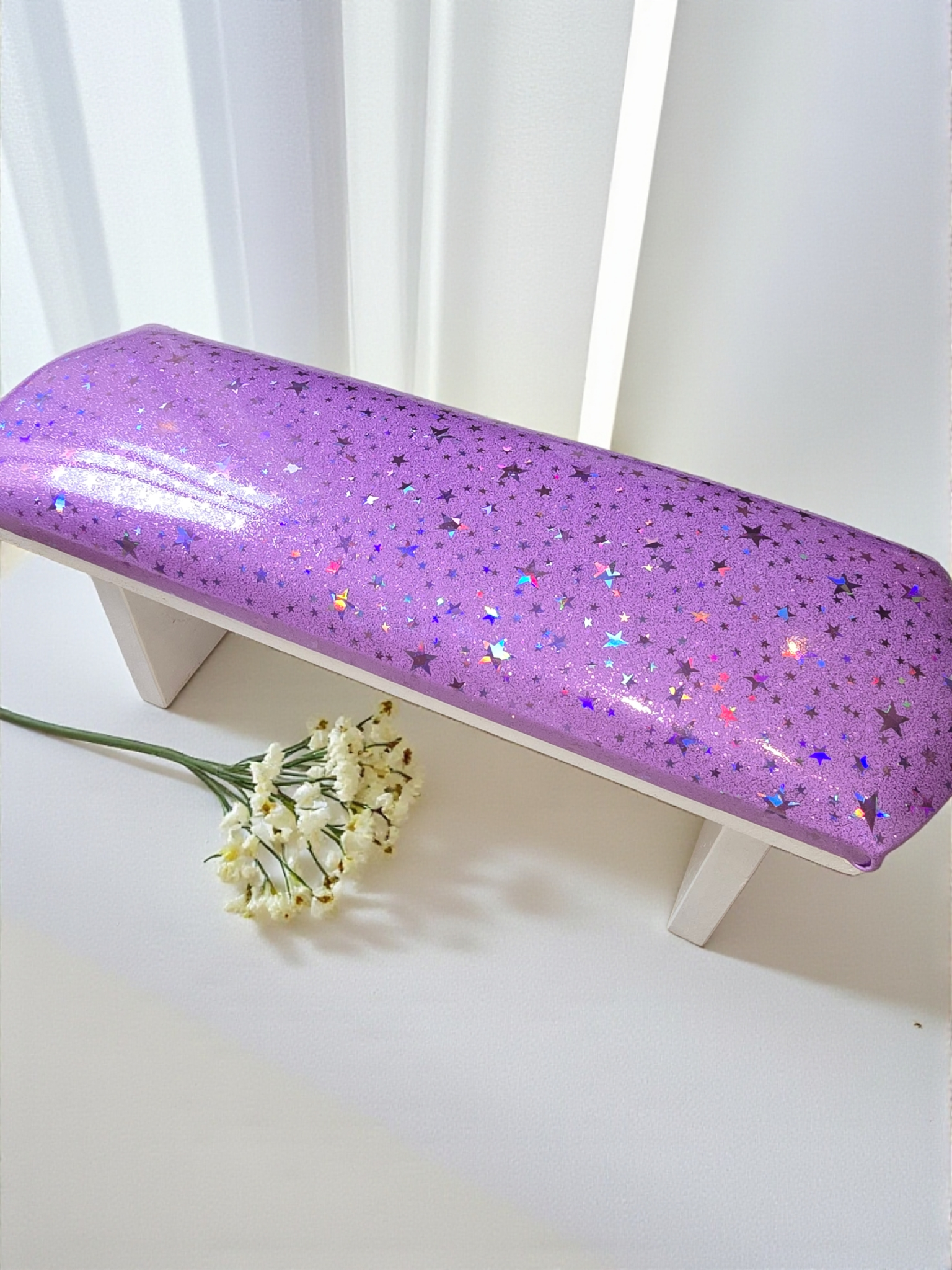 Apoya Manos lila con estrellitas tornasol