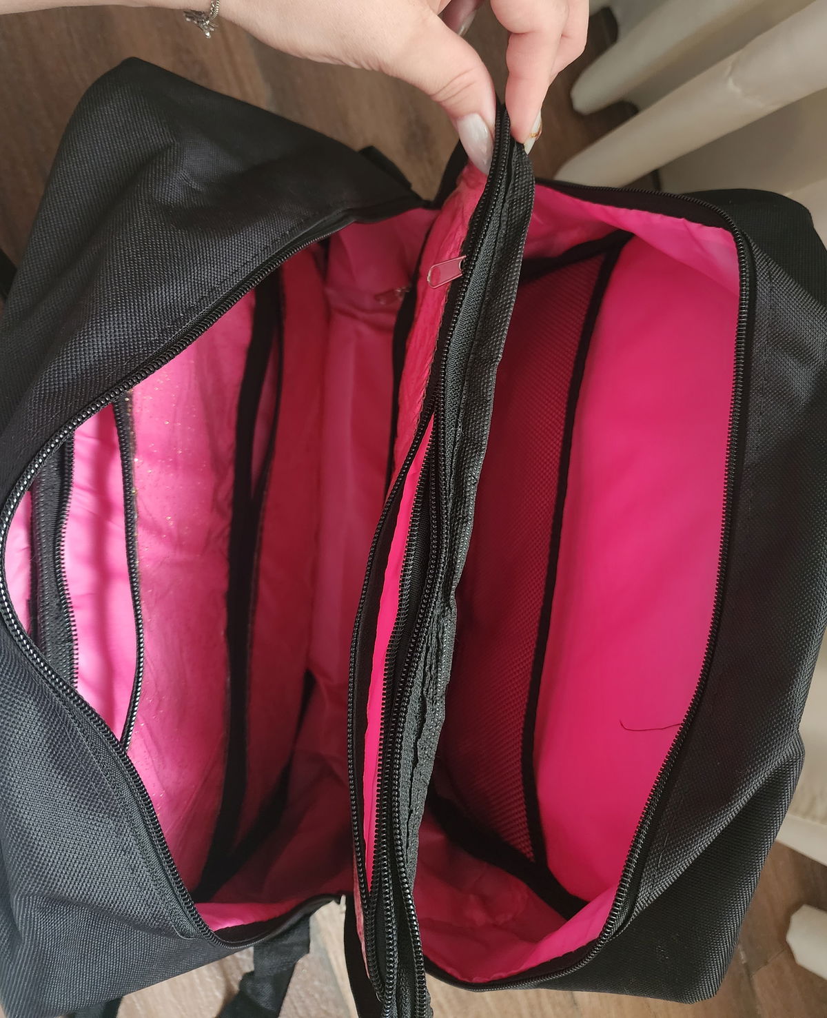 *Primer cierre con 4 bolsillos cristal con glitter.