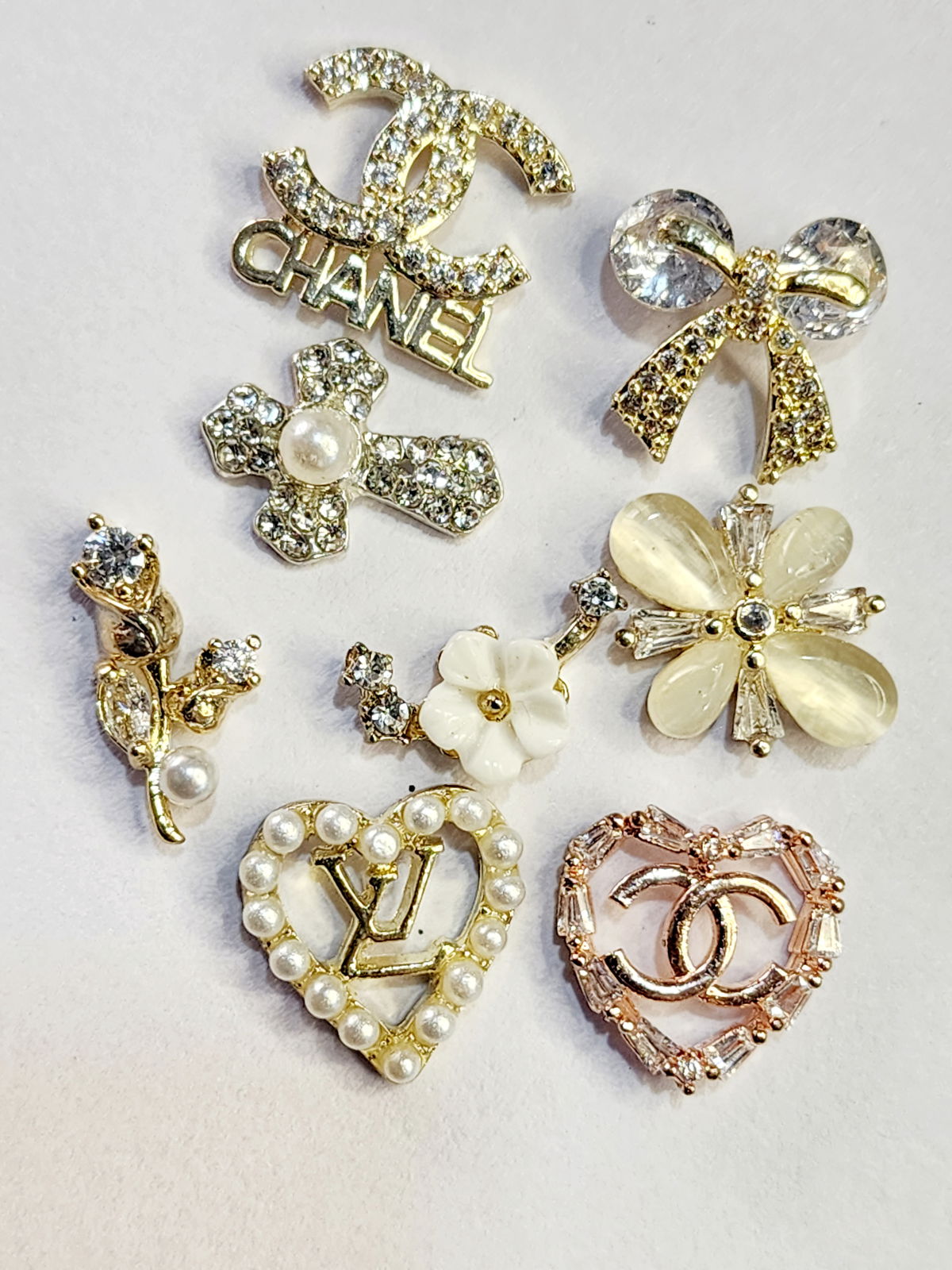 Finas joyas bañadas en oro. Posee incrustaciones de cristales K9. Peso ligero y no causa presión sobre las uñas.