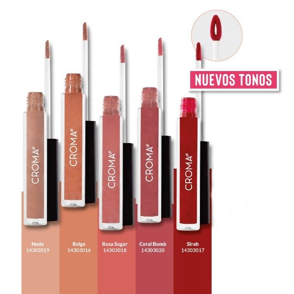De larga duración y secado rápido. Su color se fija a los labios y logra una sensación de humectación y cobertura prolongada con acabado extramate superpigmentado.