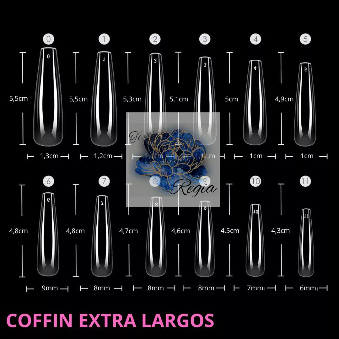 Tips ExtraXL por 120 u Forma Coffin (12 zises clear)