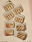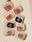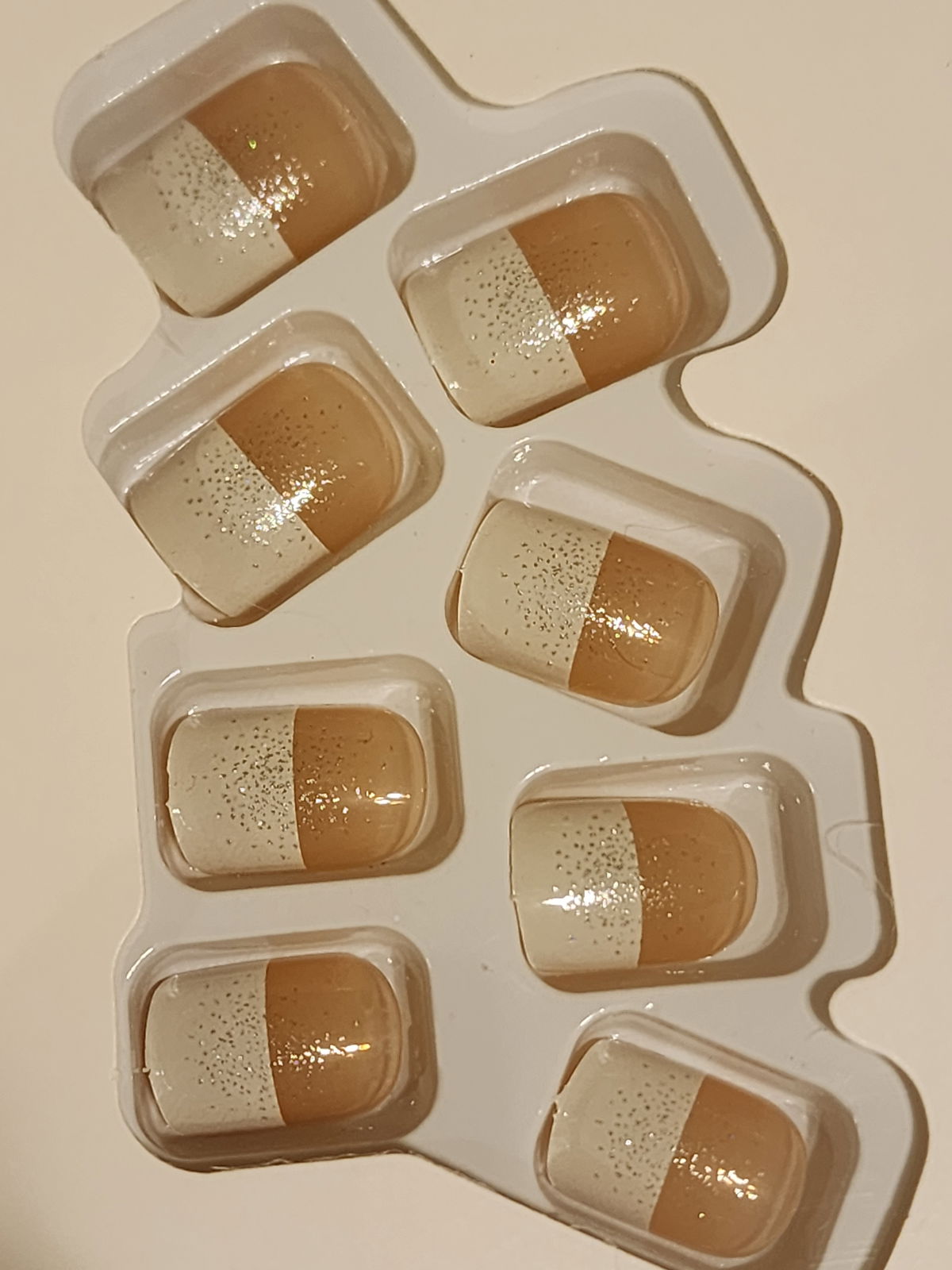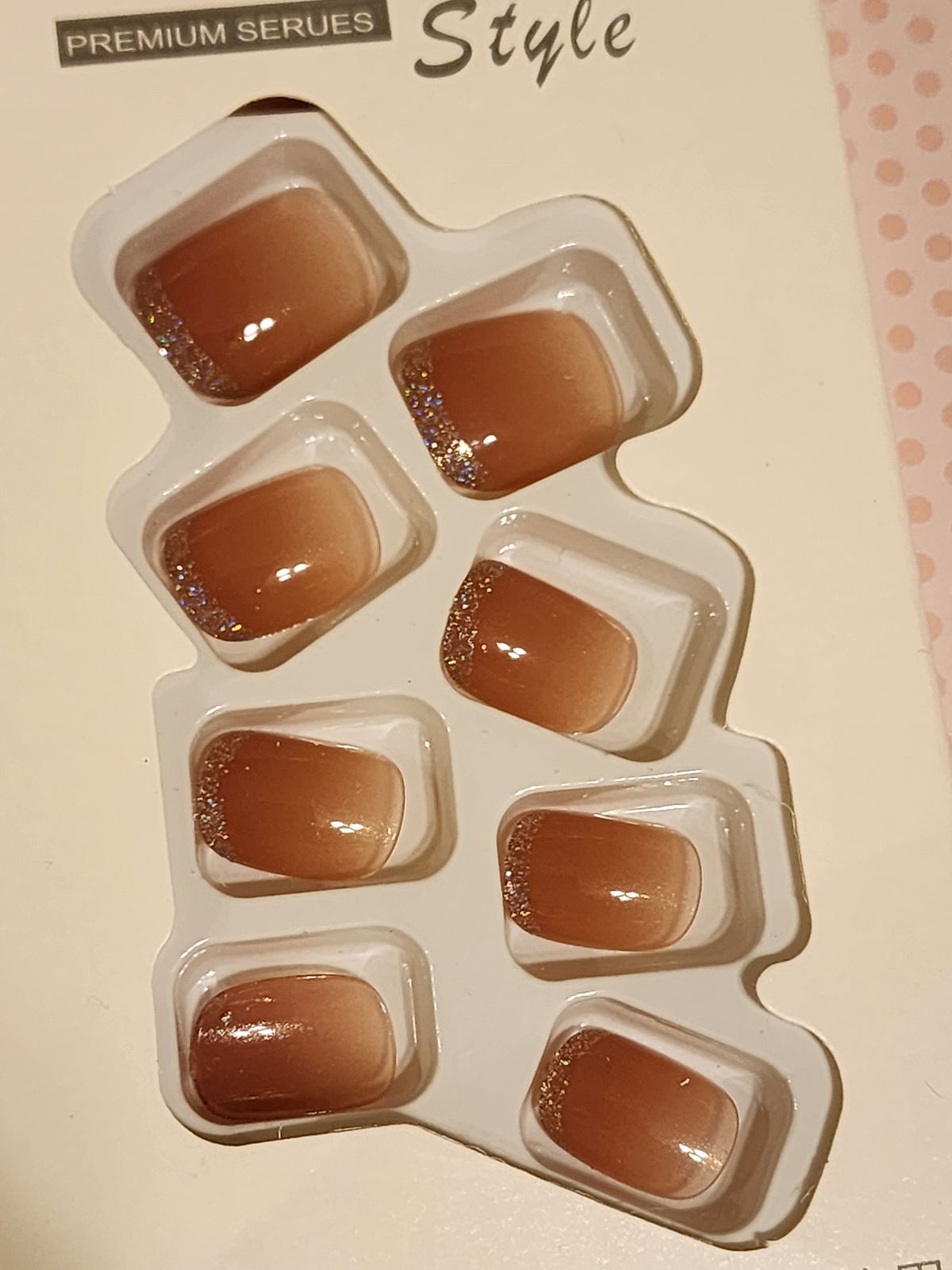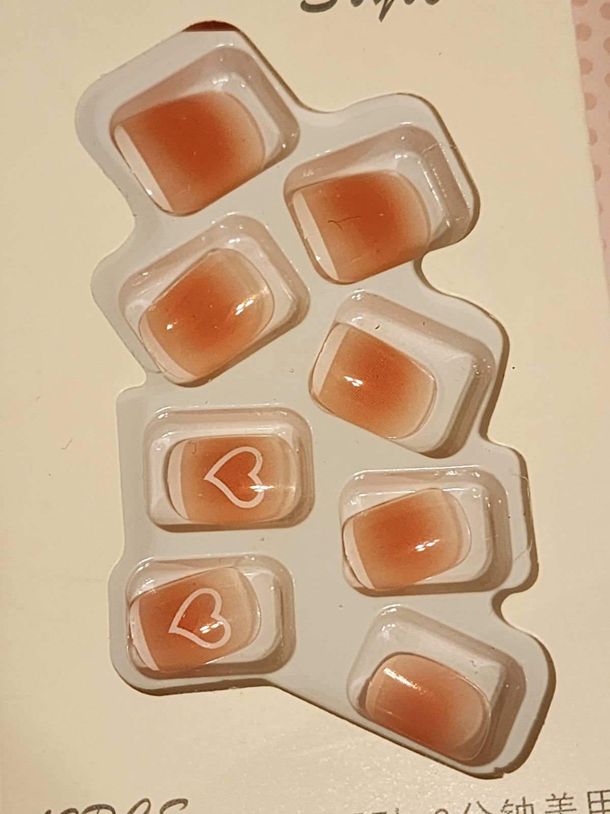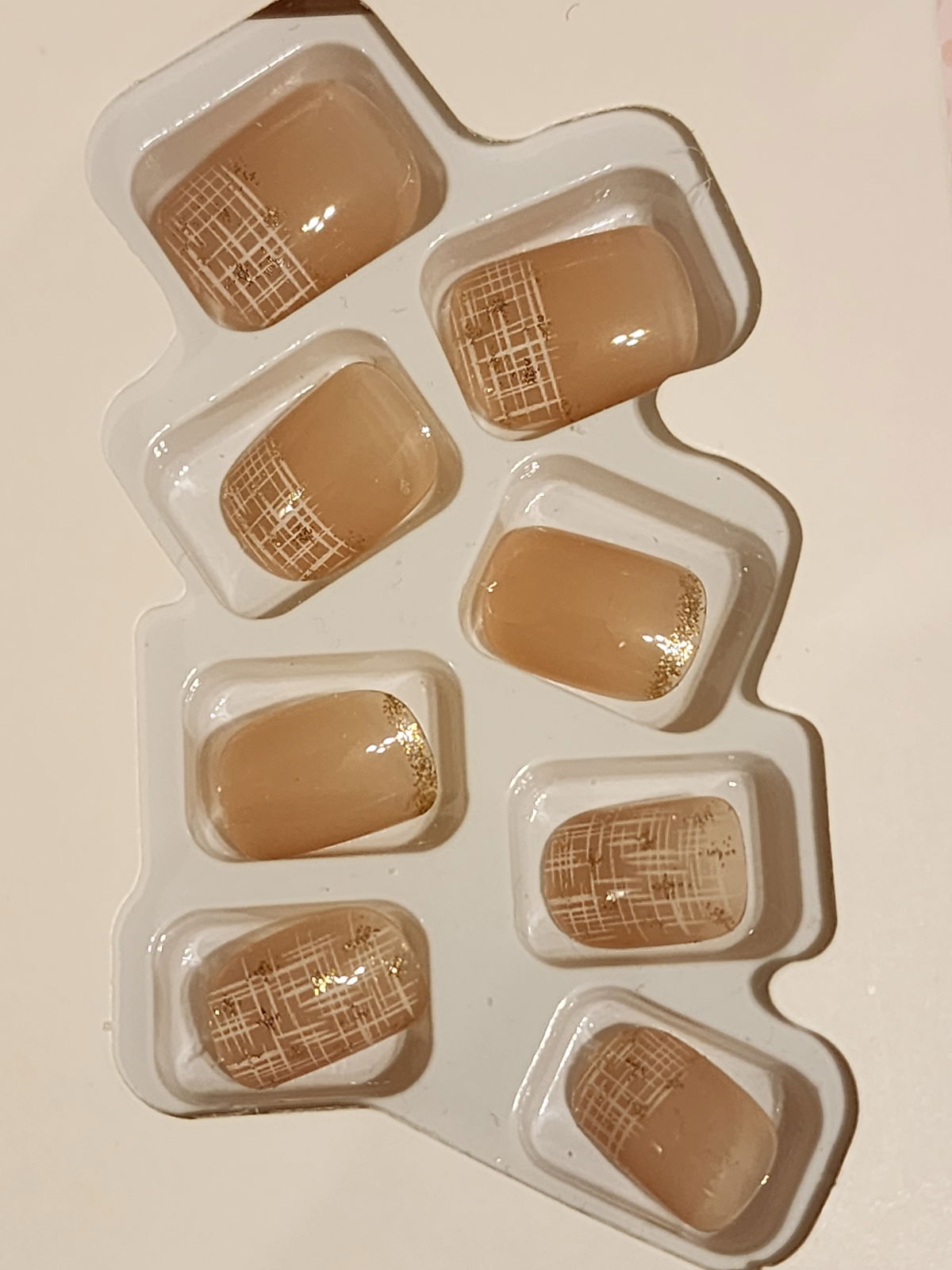 12 uñas de diferentes tamaños más una plancha de adhesivo