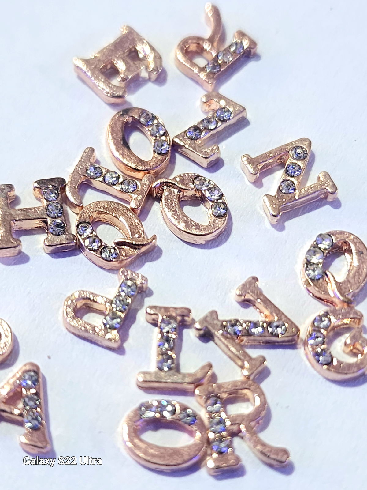 Aplique Dijes Letras Metal con Strass paquete con 18 u aprox
