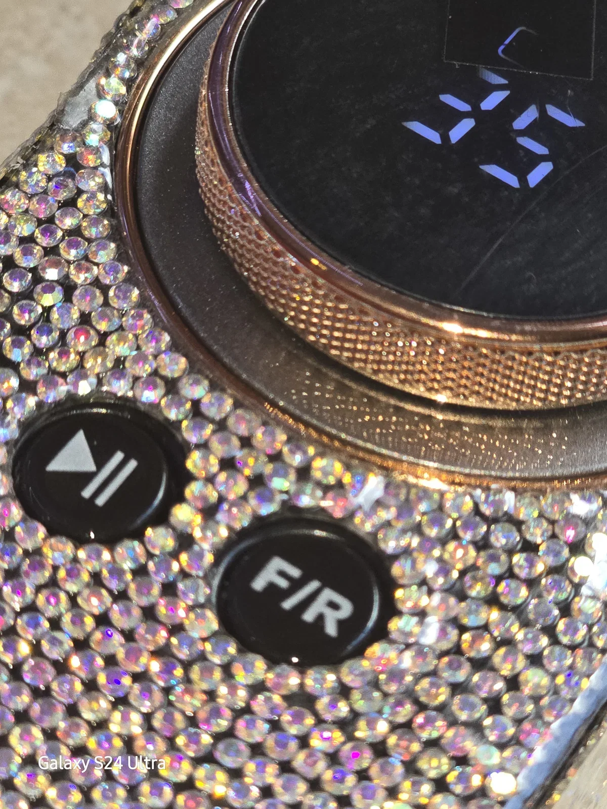 Color completamente forrado en strass con detalles oro rose